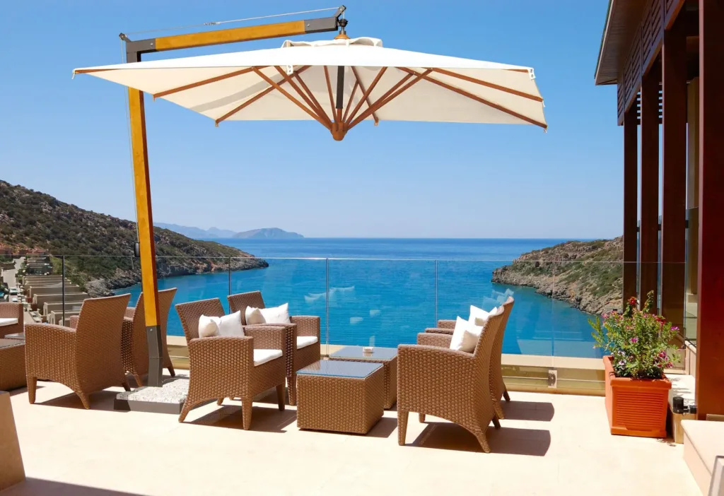 Pannelli laterali di chiusura in tessuto acrilico e crystal H 2400 mm con sistema battipioggia. Aste telescopiche per la stabilità della struttura. Porta di ingresso avvolgibile.