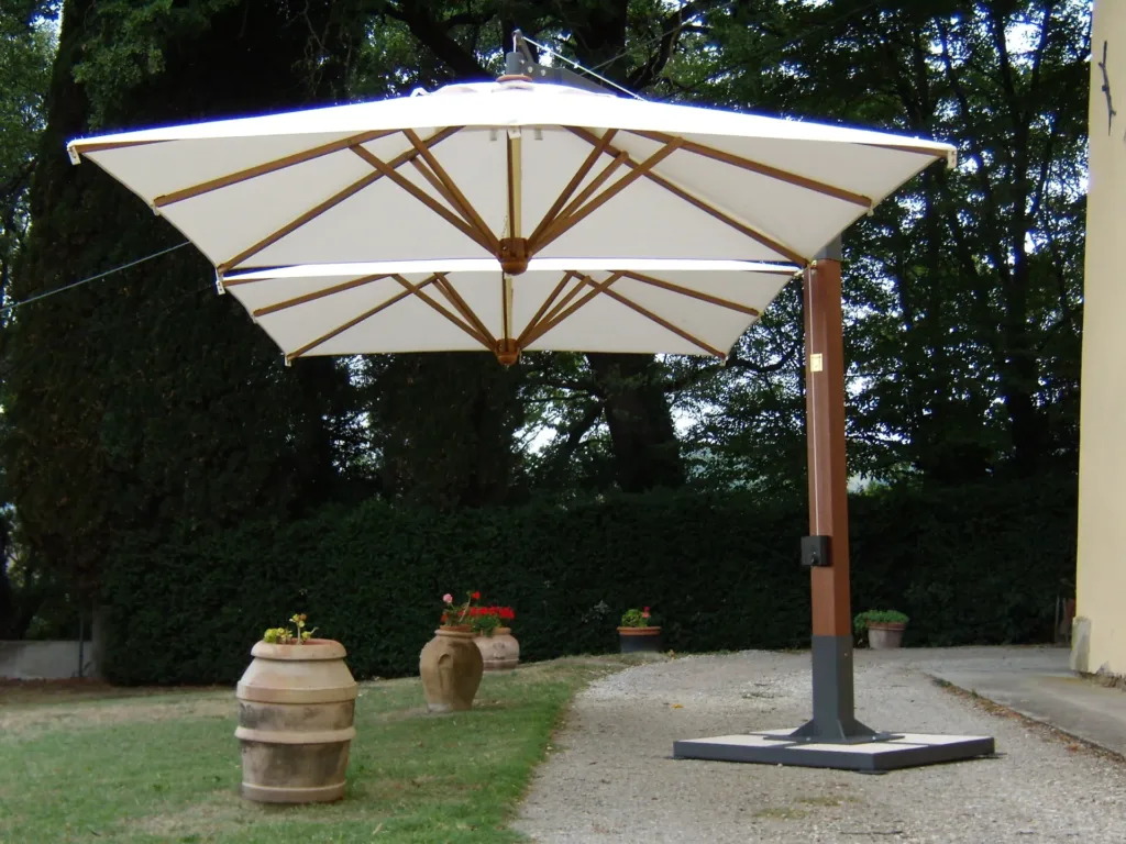 Più grandi sono le superfici da coprire e più aumenta la necessità di avere un prodotto robusto e sicuro, America Twin, l’ombrellone a palo laterale doppio, possiede entrambi questi requisiti.